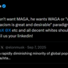 “@elonmusk doesn’t want MAGA, he wants WAGA ‘white America great again’ as a ‘racism is great and desirable’ paradigm.”